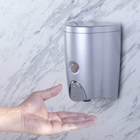 - Sản phẩm hộp nhấn xà phòng ATMOR DH-600VP với tông màu xám chủ đạo làm nổi bật không gian phòng tắm của bạn.