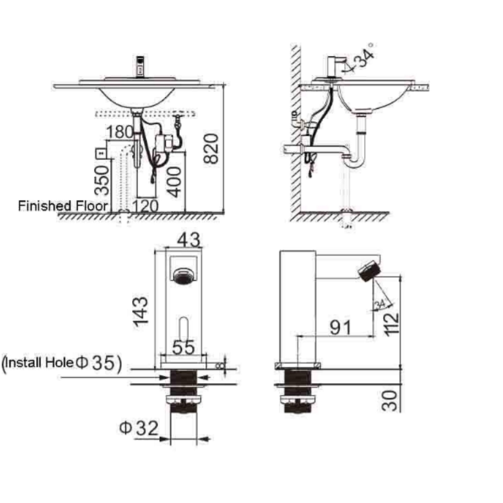 Thông số kĩ thuật – kích thước vòi lavabo cảm ứng ATMOR AT-2061 (AC/DC)